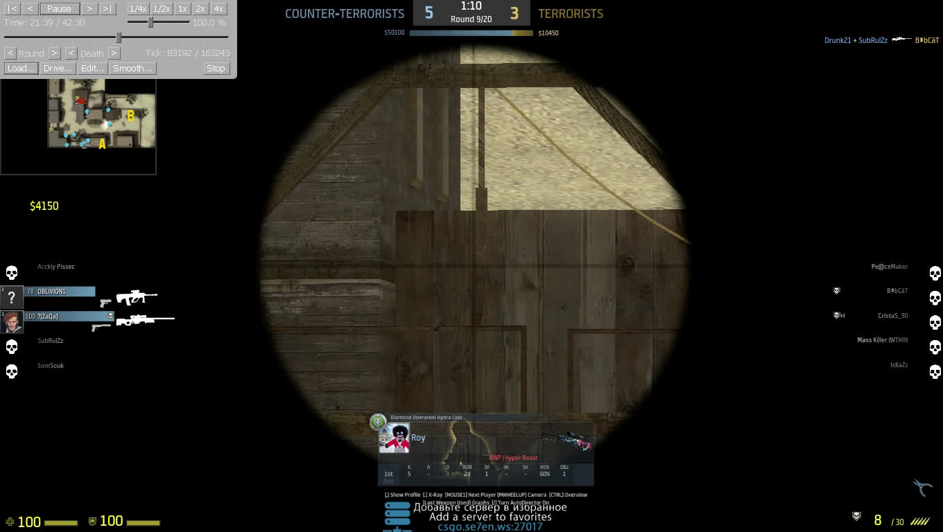 Roy как был, так и остается администратором 7 и 8 серверов. Его результативность можно увидеть в SourceBans. Все обвинения в его адрес не обоснованы. Тема закрыта.